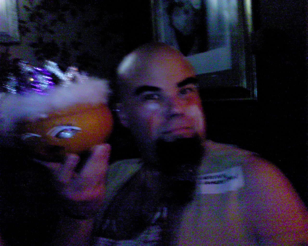 DSC00044   John and his very sexy pumpkin. Although John as a member of the village people is quite scary I'm not sure it qualifies as a hallowe'en costume