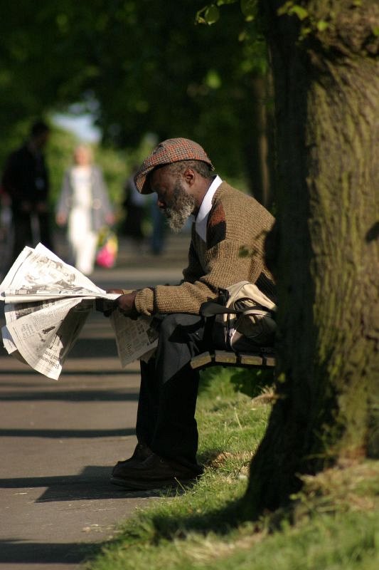 Man with paper in Greenwich Park